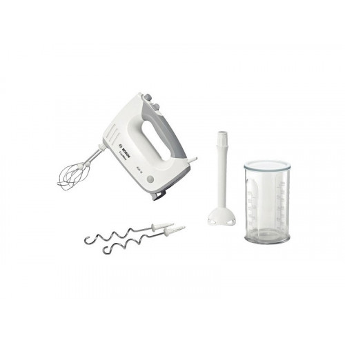 Міксер Bosch MFQ 36440, потужністю в 450 Вт, здатний показати високу продуктивність і ефективність в роботі. Bosch MFQ 36440 буде хорошим помічником на кухні, дозволяючи з легкістю підібрати оптимальні умови його роботи для досягнення бажаного результату. Працює дана модель практично безшумно на основі потужного мотора з великим ресурсом служби. Такий міксер передбачає наявність 5 ступенів швидкості обертання, імпульсний і турборежим. Спеціальна форма віночків дозволить прискорити процес збивання, а два гака знадобляться для замішування тіста. Крім цього, дана модель міксера передбачає можливість приєднання насадки-блендера, ніжка якого виконана з міцного зносостійкого пластика, а гострі ножі - зі сталі.