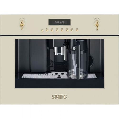 Кавомашина "SMEG CMS8451P" - багатофункціональний сучасний апарат для приготування кави, чаю та інших гарячих напоїв. Виробник – всесвітньо відомий бренд SMEG. "SMEG CMS8451P" - кавомашина автоматичного типу. Вона має латунну фурнітуру. Колір корпусу – світло-кремовий. Геометричні параметри машини: ширина становить 60 сантиметрів, висота – 45 сантиметрів. LСD-дисплей машини може працювати у російськомовному режимі. Корисний об'єм резервуару для води – 1,8 літра. Об'єм резервуару для кавових зерен достатній для того, щоб вмістити близько 220 г продукту. Є ємність і для меленої кави різних видів. Також є ємність для молока. Машина оснащена знімним контейнером для відпрацьованої кавової гущі, а також піддоном для збору крапель. Висвітлення у машини: 2 лампи.
